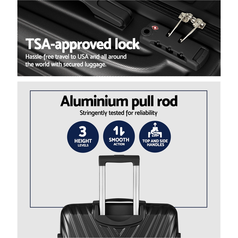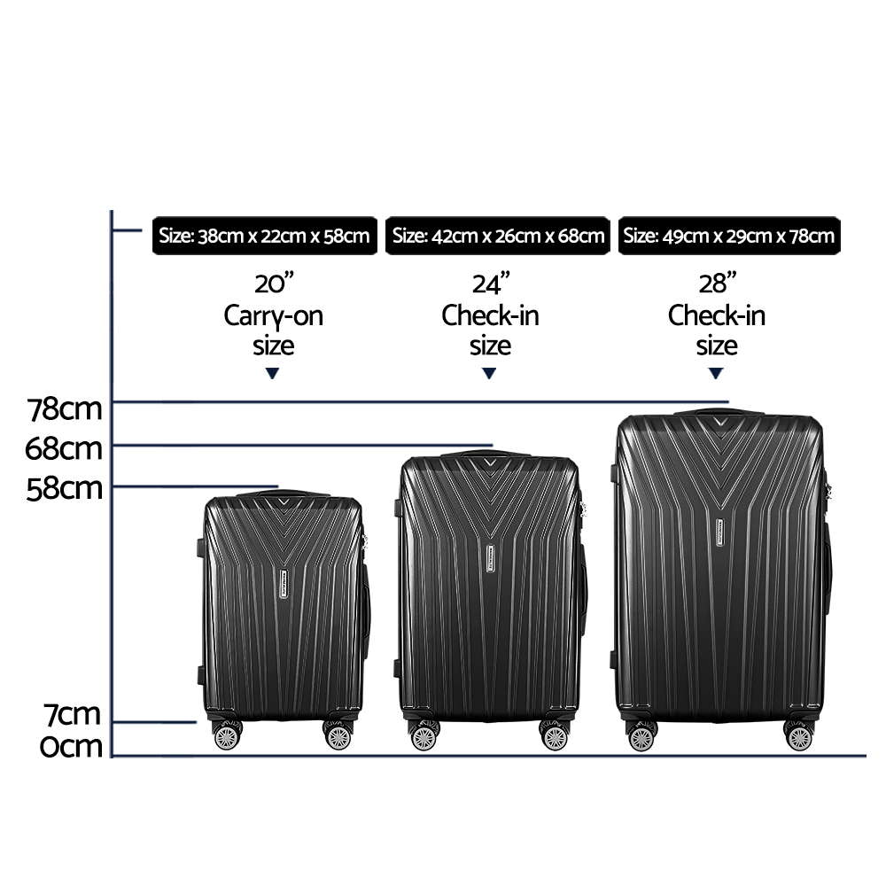 Wanderlite 3 Set Luggage 20-24-28 Inch Suitcase with TSA Lock Carry On Hard Shell Travel Luggage Organiser Case Black