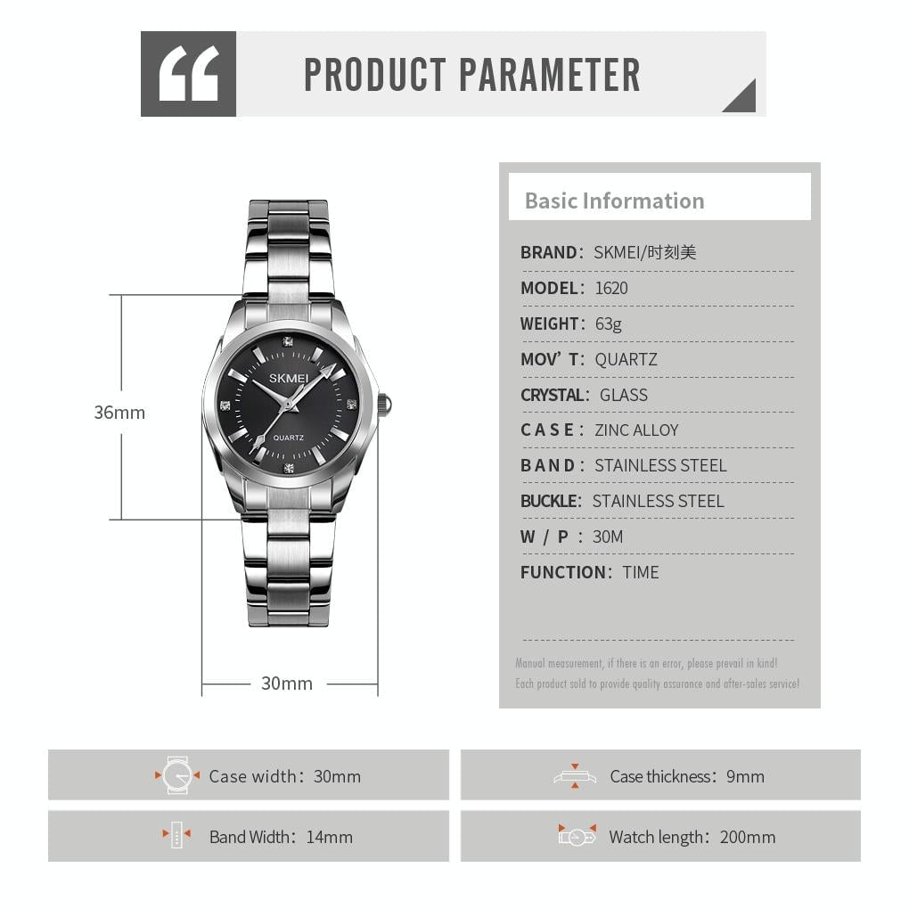 - Material: Zinc Alloy (Case), Stainless Steel (Strap and Buckle), Quartz Glass (Mirror)