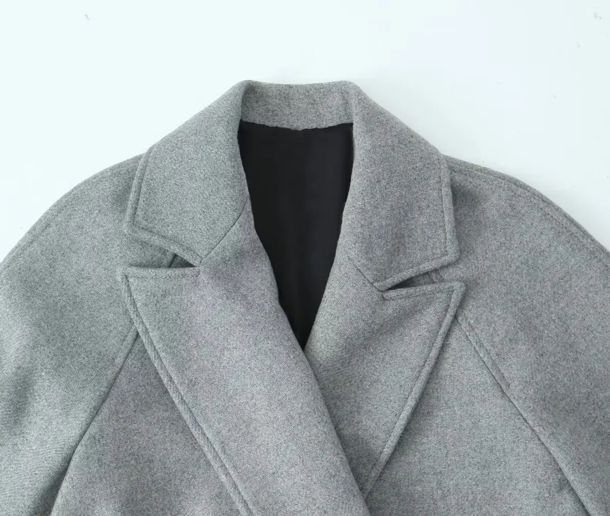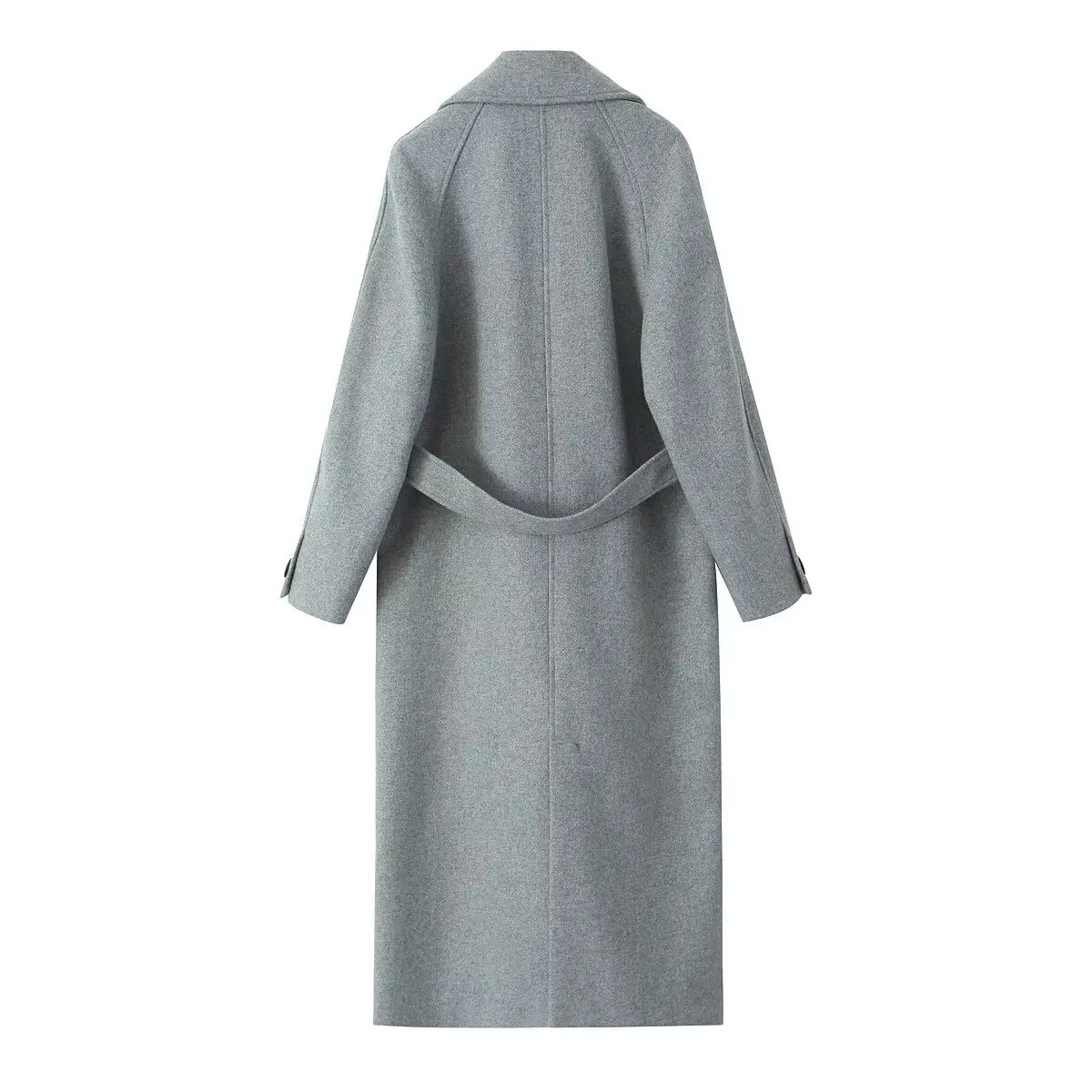 Womens Gray Belt Oversized Lapel Long Sleeve Pocket Coat