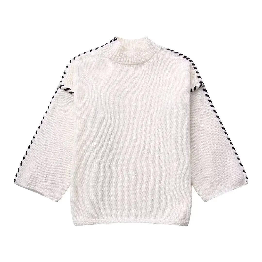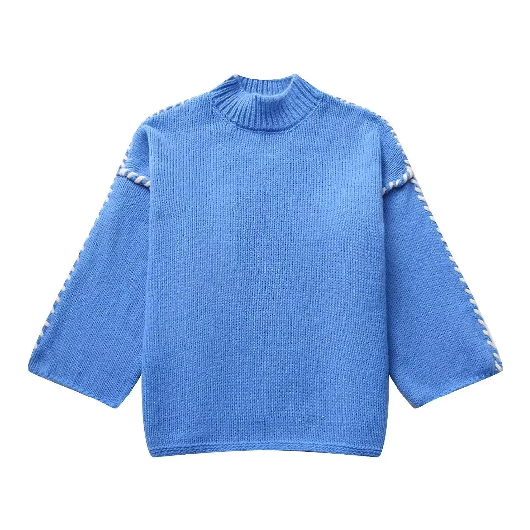 Womens Long-sleeved Knit Sweater Mock Collar