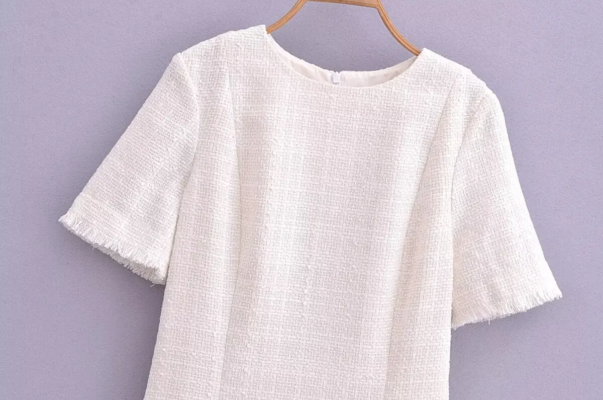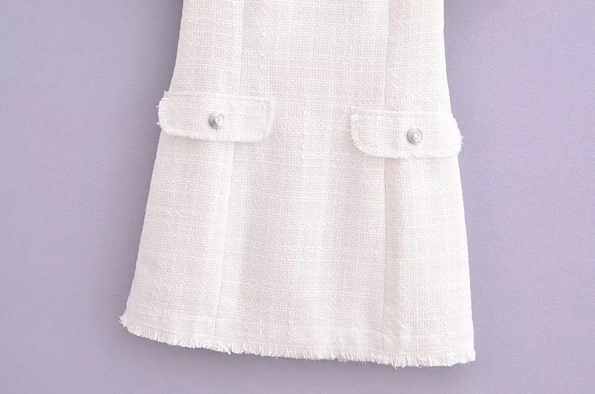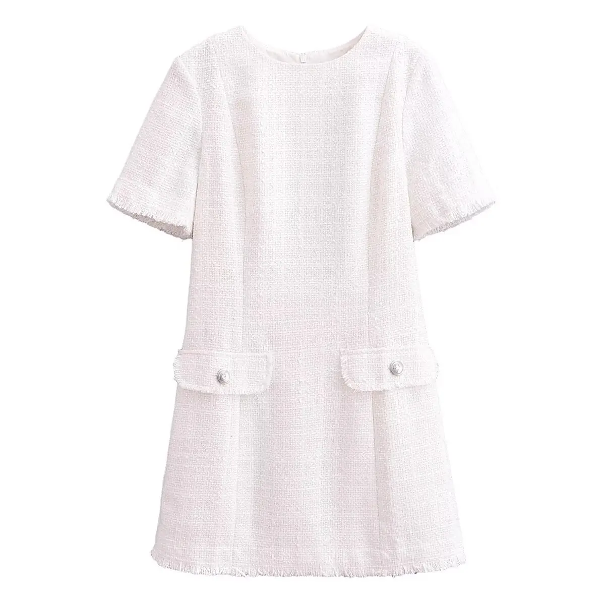 Introducing our timeless Women’s Classic Black or White Short Sleeve Tweed Mini Dress with Button Detail, a wardrobe staple that exudes elegance and sophistication. Crafted from high-quality tweed fabric, this mini dress offers a perfect blend of comfort and style. The short sleeves and mini length silhouette provide a versatile and flattering fit for any occasion. Adorned with chic button detailing, this dress adds a touch of refinement to your ensemble. Whether you choose classic black or pristine white, this dress is a versatile piece that can be dressed up or down effortlessly. Elevate your look with this classic wardrobe essential