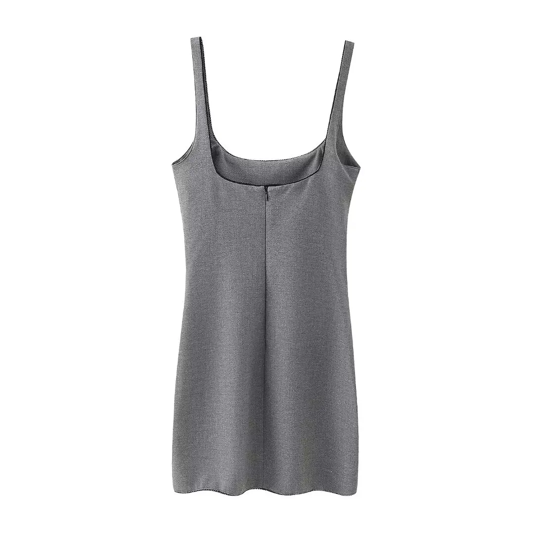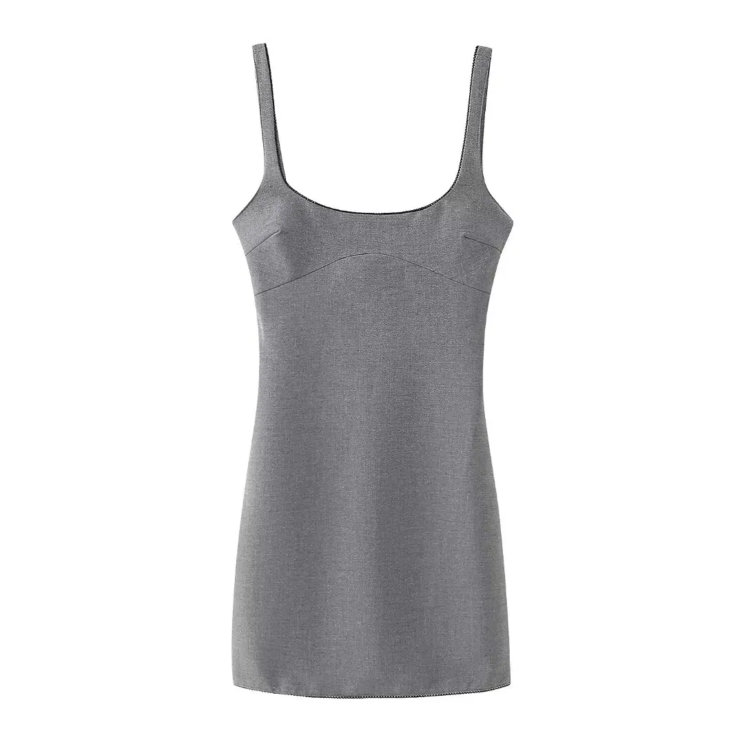 Womens Silver Gray Strap Slim Fit Lace Detail Mini Dress