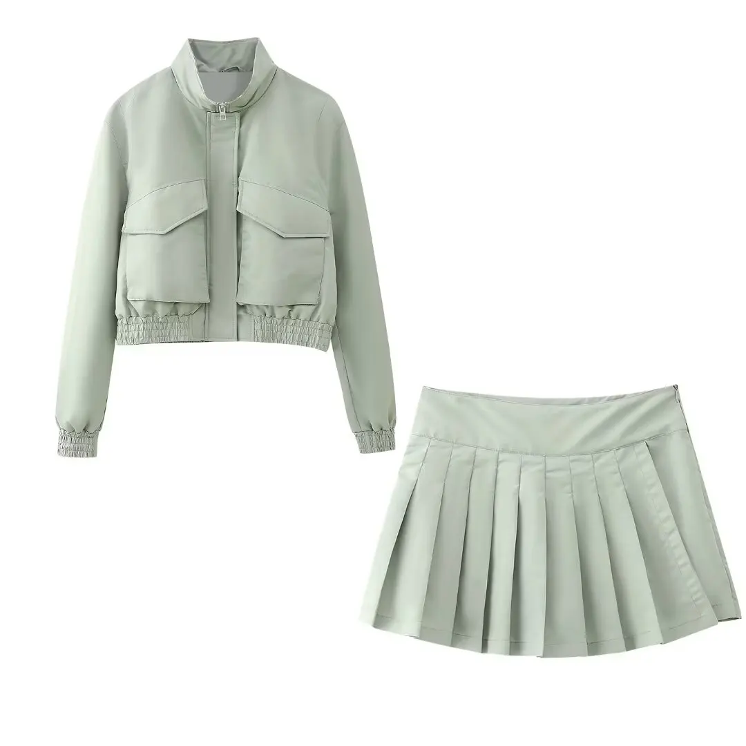 Experience timeless elegance with our Women’s Ice Gray Retro Nylon Zipper Jacket Coat + Pleated Mini Skirt set. Perfect for adding vintage charm to your wardrobe, this ensemble exudes sophistication and style. Enjoy free shipping Australia-wide on all women’s fashion at Kouwi.com.
