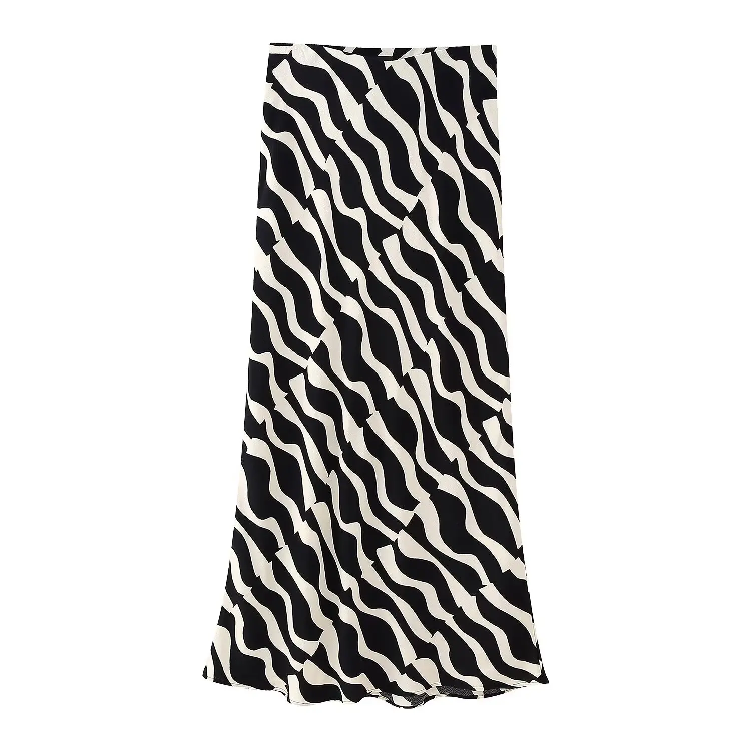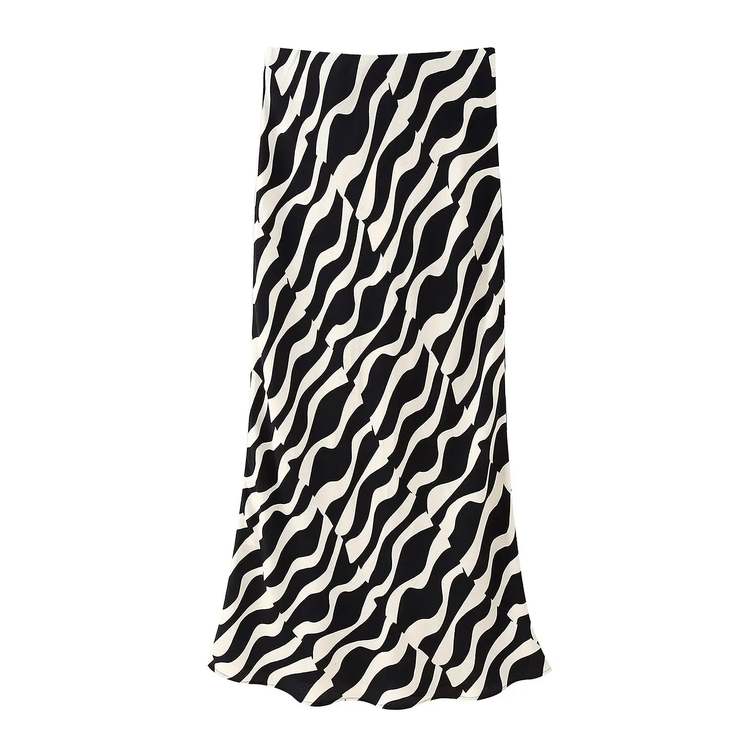 Womens Black & White Swirl Print Shirt + Midi Skirt Set