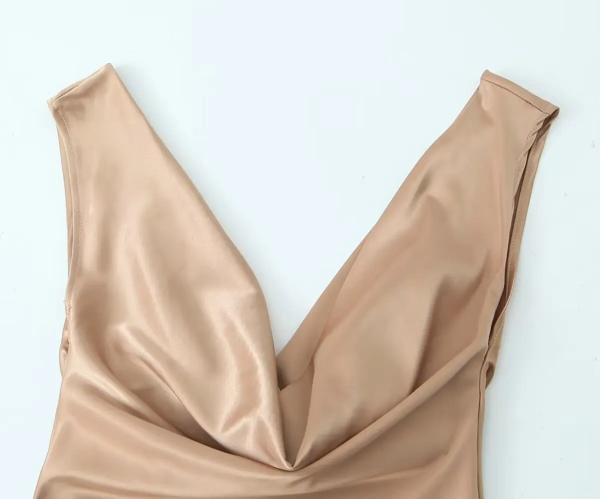 Dazzle the crowd in our Women’s Silk Satin Glam Low Cut Backless Midi Dress in Champagne Gold at Kouwi.com. Perfect for adding a touch of luxury to any event, this dress exudes elegance and style. Enjoy free shipping Australia-wide on all women’s fashion.