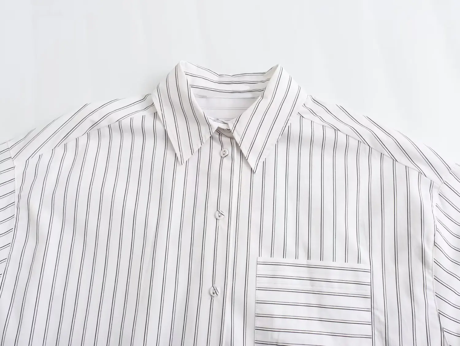 Introducing effortless sophistication with our Women’s White Stripe Oversized Vintage Lapel Long Sleeve Shirt. Crafted for comfort and style, this oversized shirt exudes a timeless charm with its vintage-inspired design and classic lapel. The long sleeves add a touch of elegance while providing versatility for various occasions. Whether paired with jeans for a casual outing or dressed up with a skirt for a more refined look, this shirt promises to elevate your style effortlessly. Embrace timeless fashion with this wardrobe staple that seamlessly blends comfort and sophistication.