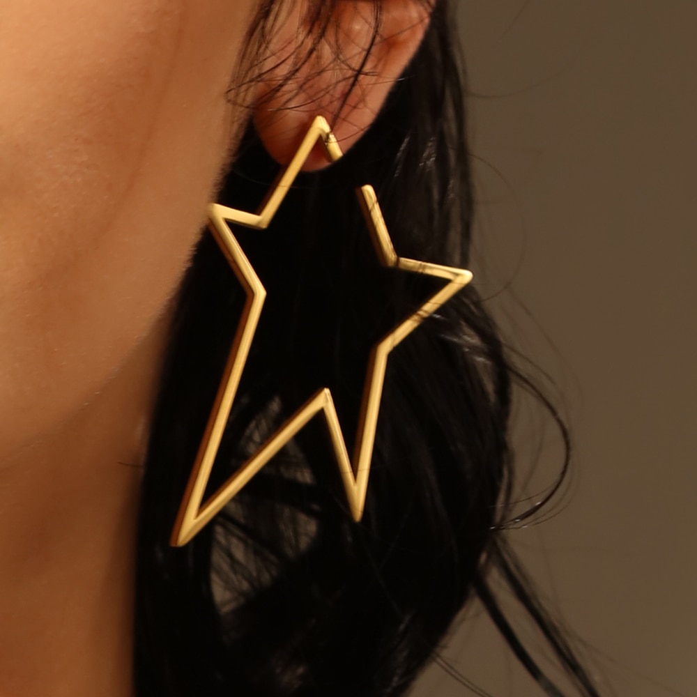 The oversized star silhouette is a standout feature that adds a modern, fashion-forward edge. These earrings are designed to make an impact while maintaining a clean, minimalist elegance—making them a versatile choice for casual days and glamorous nights.