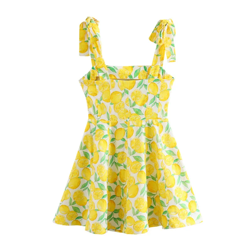 Women’s Lemon Print Sleeveless Mini Dress with Adjustable shoulder strap