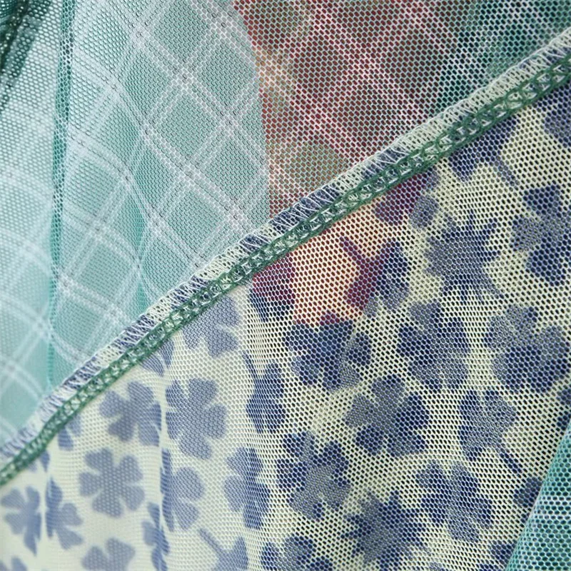 - Style: Patch Floral Print Tulle High-Waisted Slim Stretch Sleeveless Mini Dress
