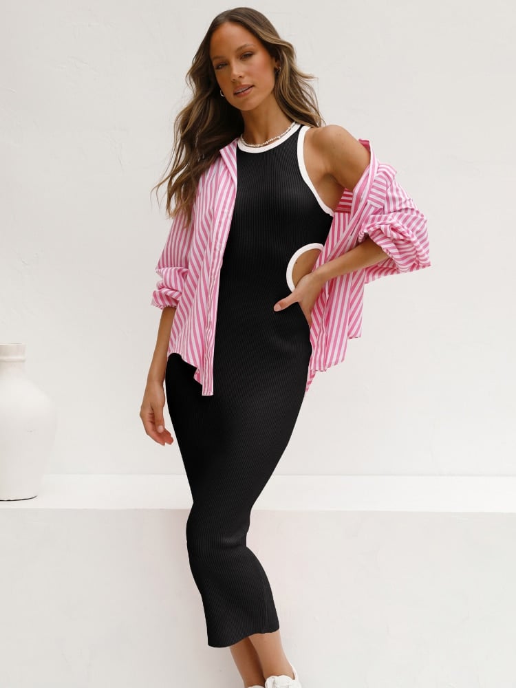 Crafted with precision, this sleeveless streetwear dress features stylish cut-out details that add a touch of edginess to your ensemble. The mid-calf length strikes the perfect balance between casual and sophisticated, making it suitable for various occasions – from a day out with friends to a night of dancing.