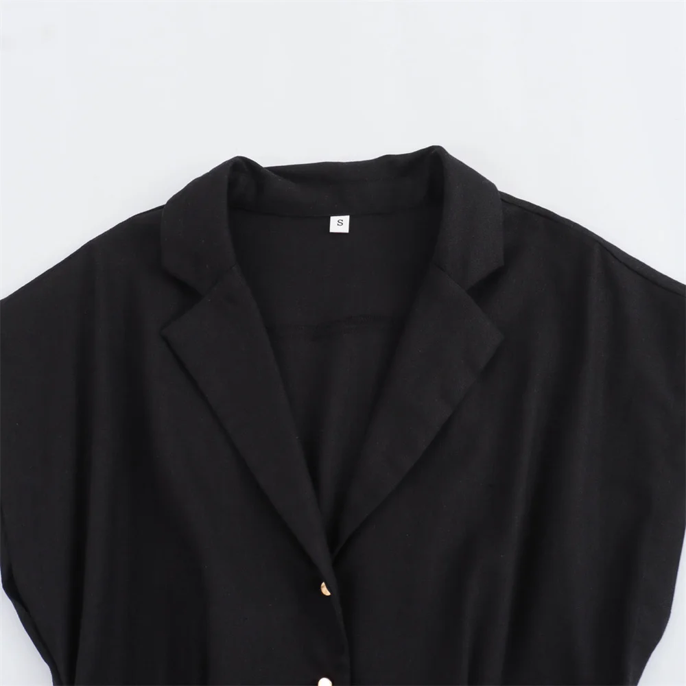 Effortlessly Chic: Women’s Summer Black Linen Blend Midi Shirt Dress