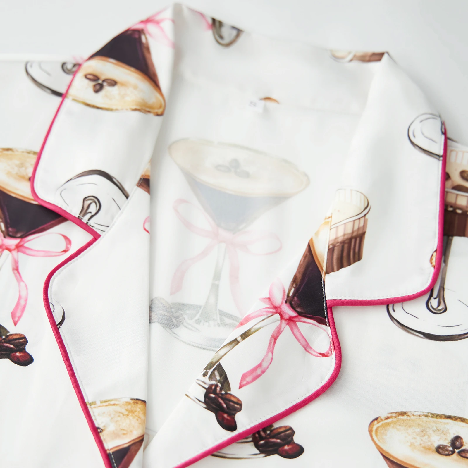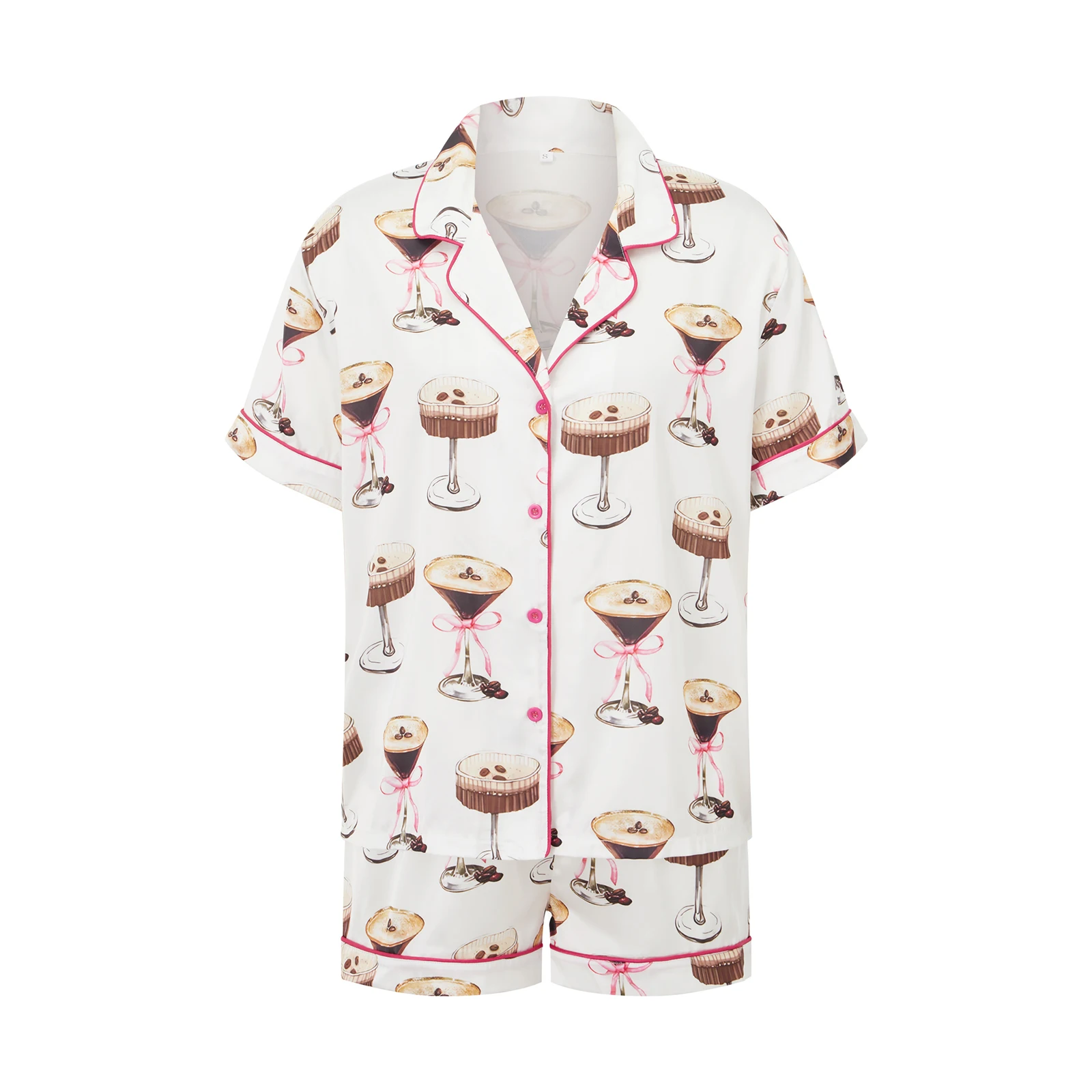 Women’s Lounge Set Short Sleeve Lapel Bow Goblet/Boots/Wine Glass Print