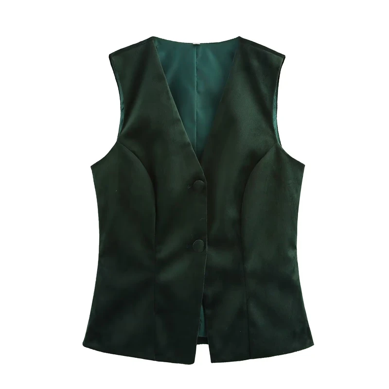 Upgrade your wardrobe with the Women’s Velvet Waistcoat – Retro V-Neck, Single-Breasted Slim Fit, Sleeveless Crop Top Thin Vest, available in Green or Deep Red. This chic piece blends vintage charm with modern sophistication, making it a standout addition to any outfit.