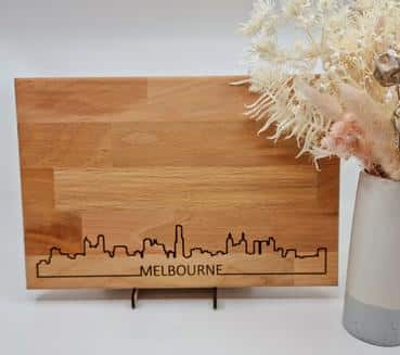 Featuring the iconic Melbourne skyline laser-engraved onto the surface, this cheese board is a true celebration of Australian craftsmanship and city pride. Whether you’re serving up a selection of cheeses or presenting hors d’oeuvres, this board adds a touch of elegance to any table setting.