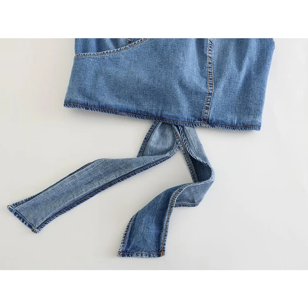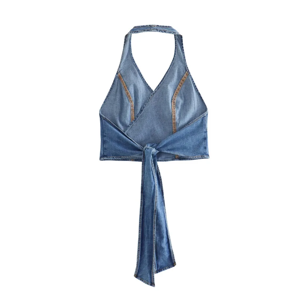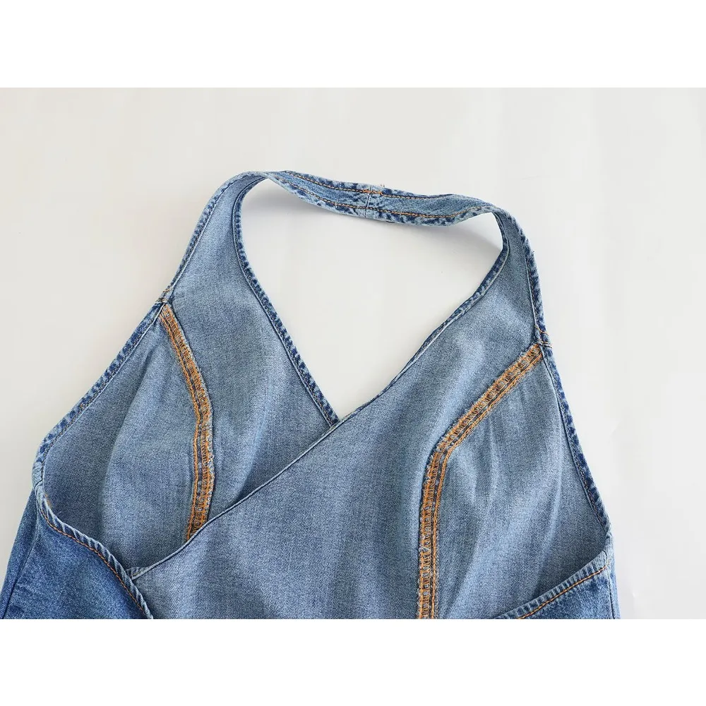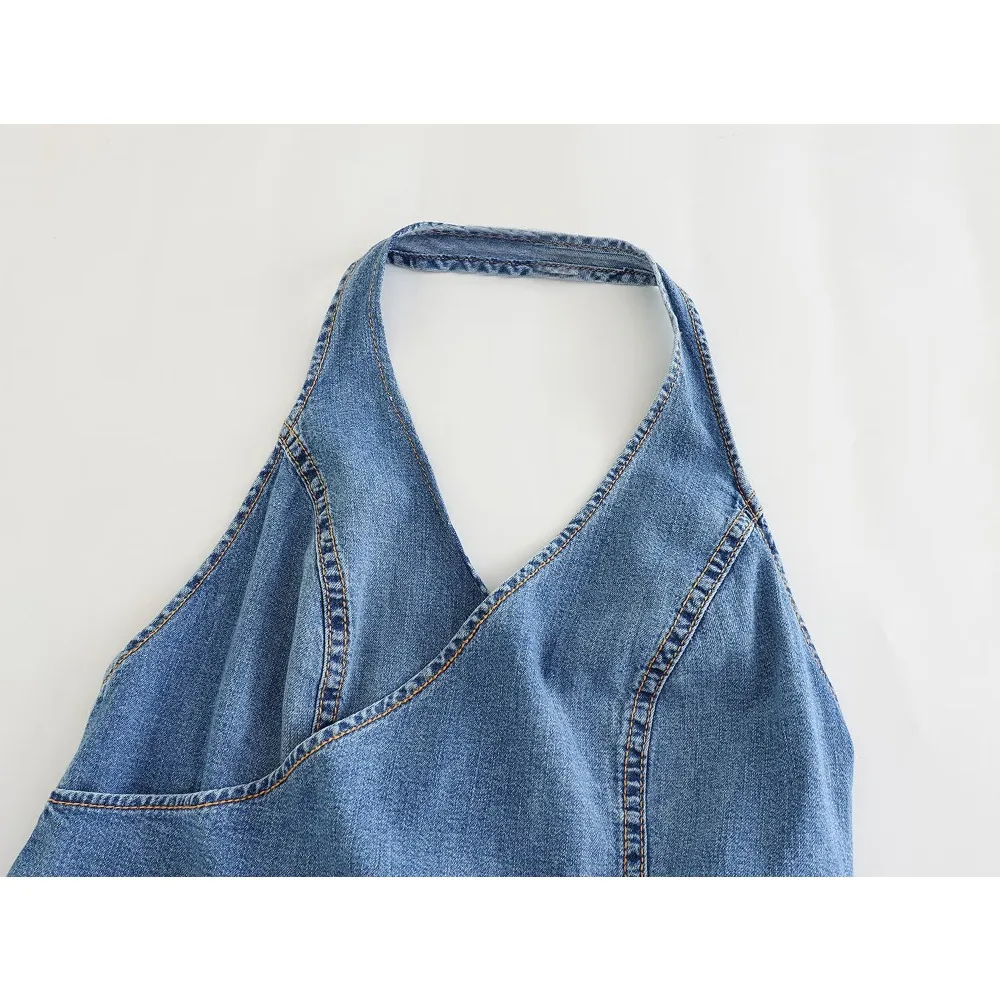 Zach Denim Halter Crop Top – Trendy Summer Style