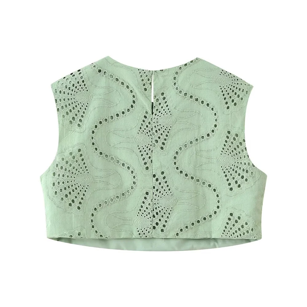 Zach Green Sleeveless Embroidered Crop Skirt Set