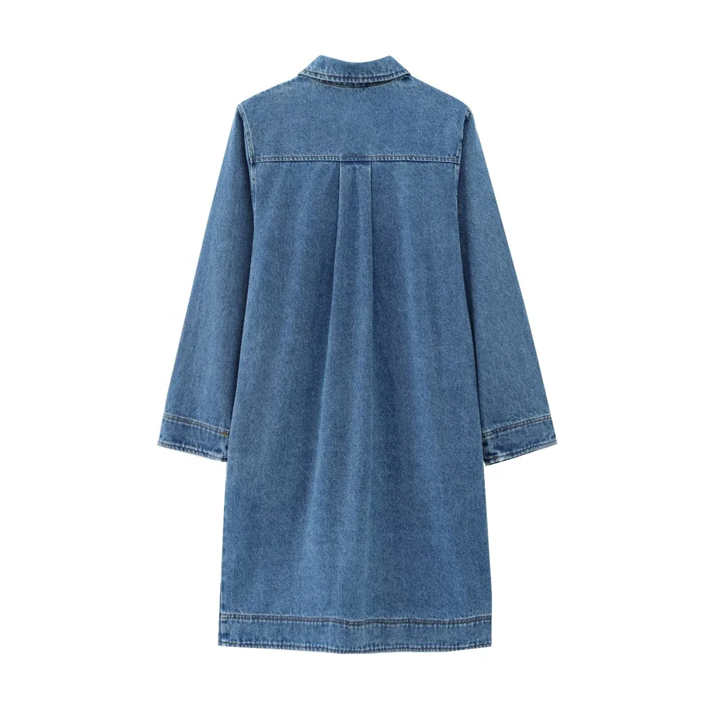 - Lapel Collar & Half-Zipper: Adds a modern twist to the classic denim dress style.