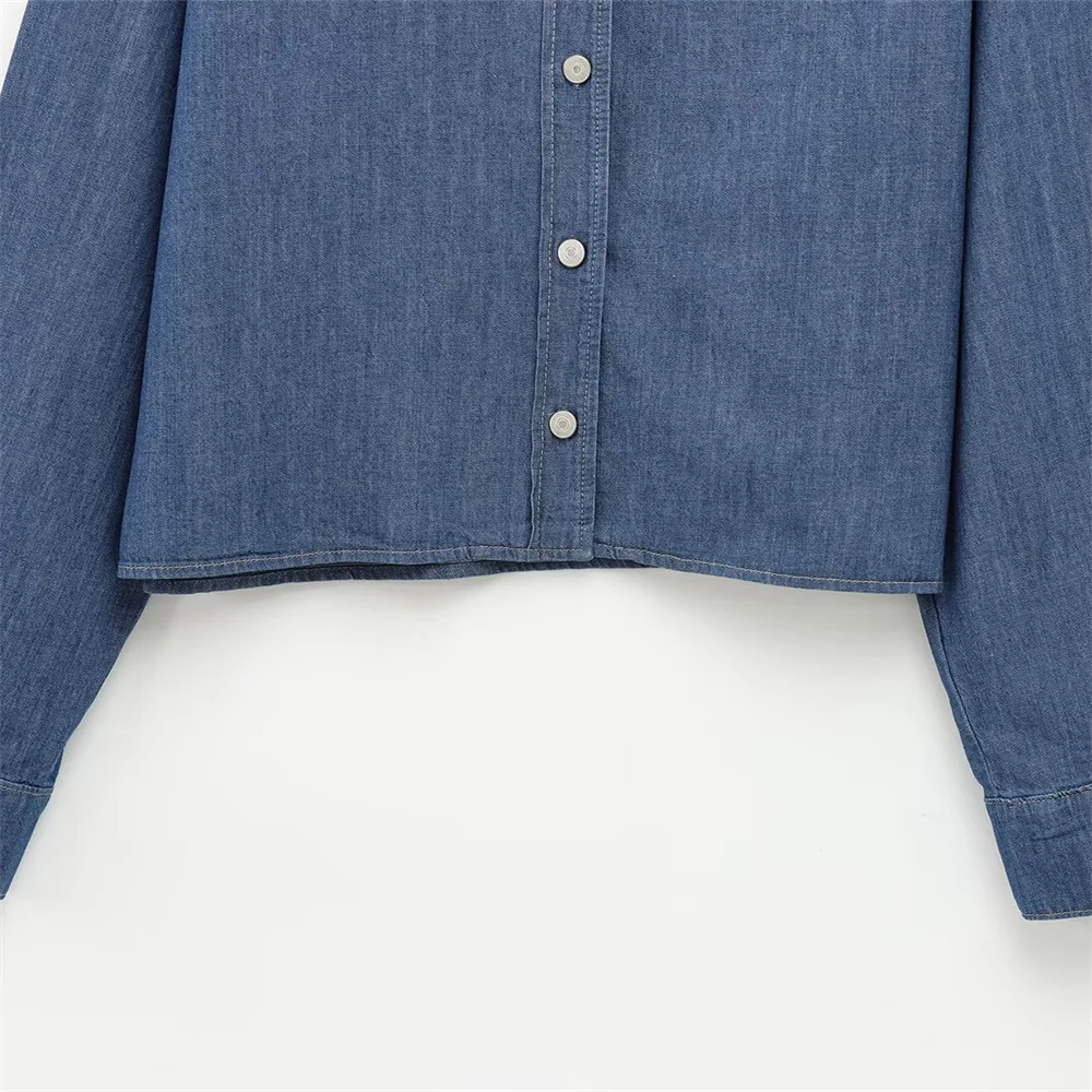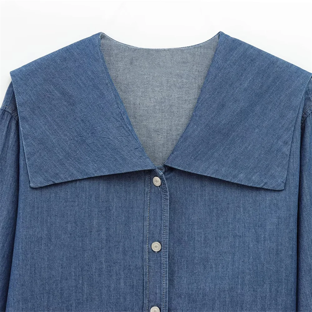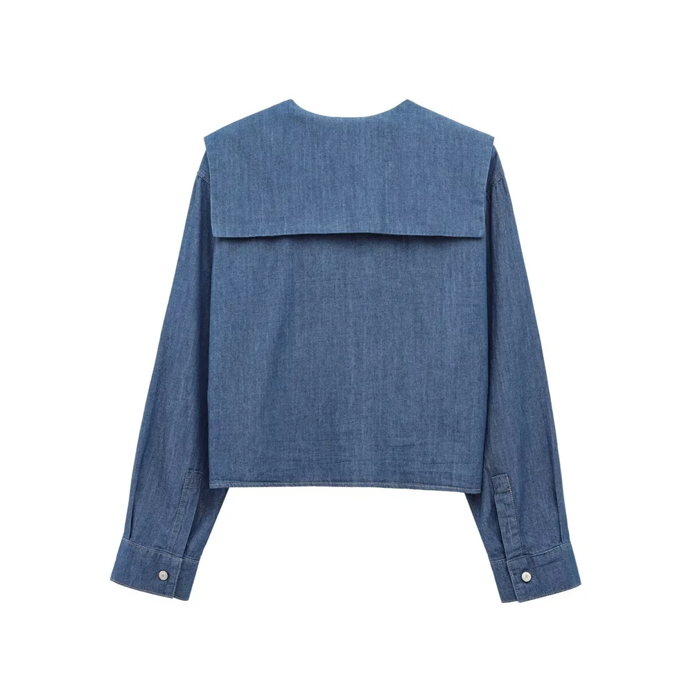 Zach Women’s Lapel Long Sleeve Button-Up Denim Shirt