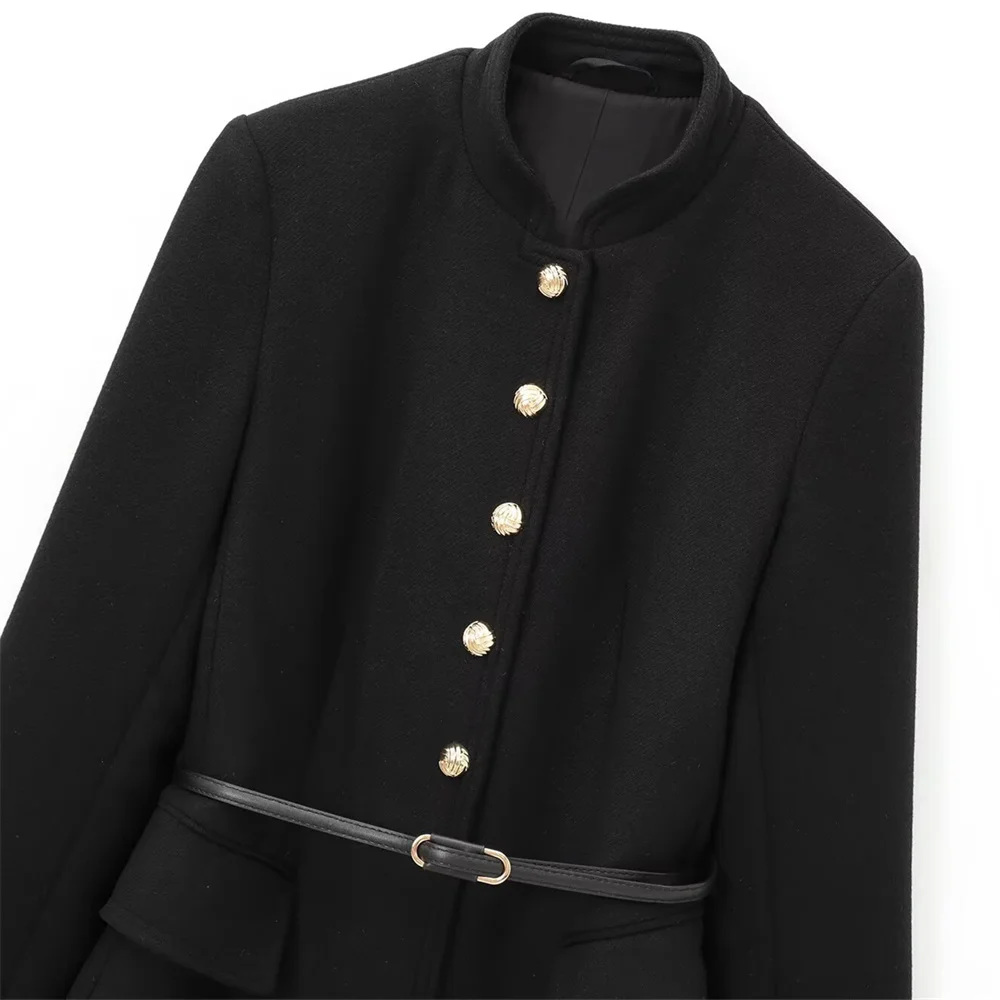 Zach Women’s Long Sleeve Black Coat with Waistband Dress