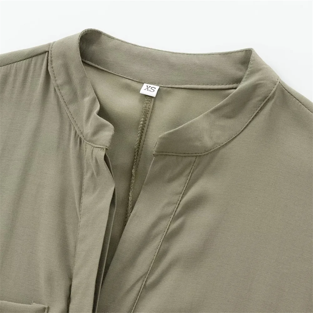 The army beige color gives it a chic, earthy vibe that pairs effortlessly with a variety of accessories, making it easy to dress up or down. The round neckline and short sleeves offer a relaxed, yet refined fit, while the waist strap cinches in to create a flattering silhouette that accentuates your curves. Perfect for adding a touch of femininity without compromising on comfort.