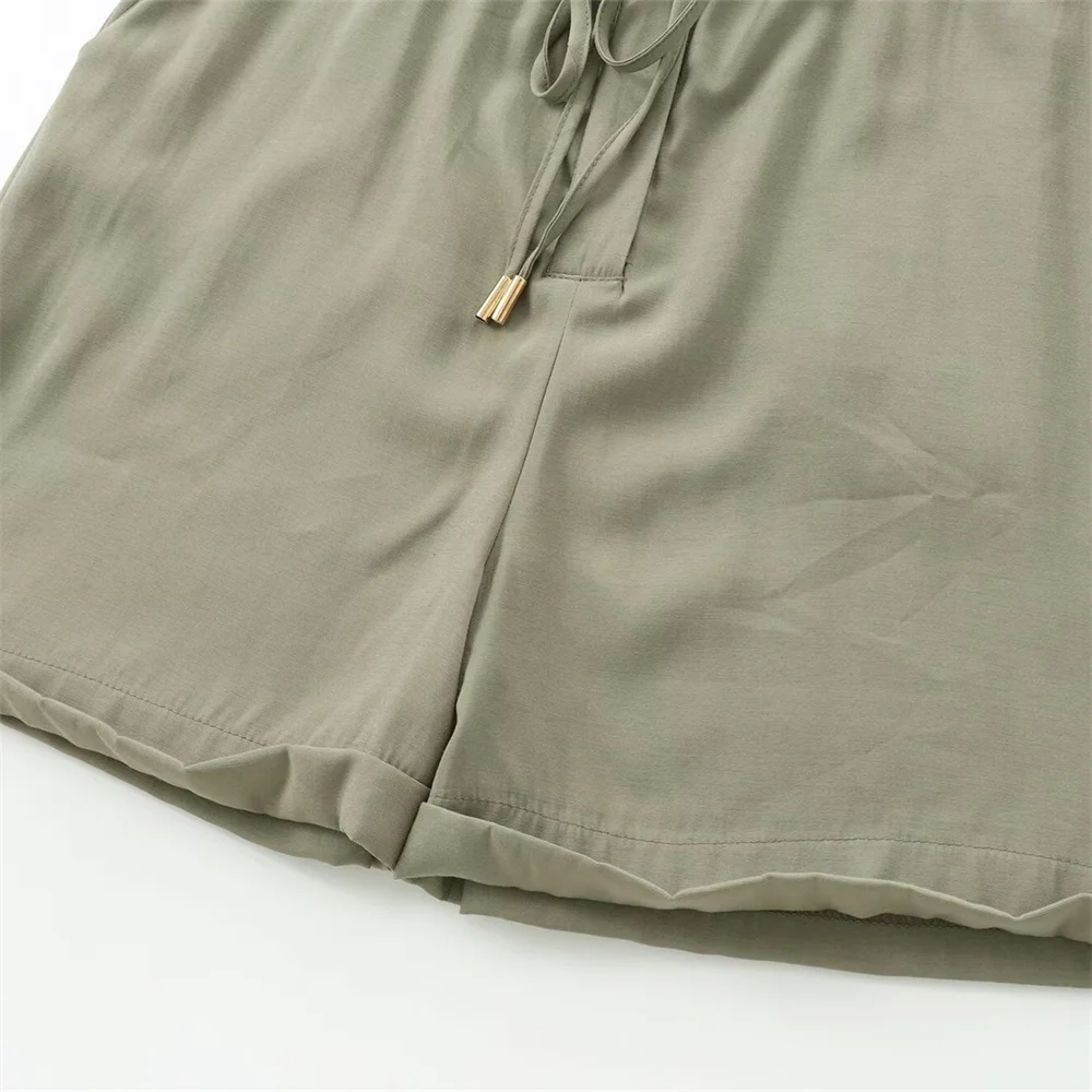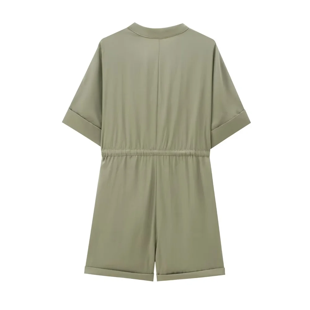 Perfect for women who value both function and fashion, the Zach Women’s Army Beige Round Neck Short Sleeve Jumpsuit is an essential wardrobe piece.