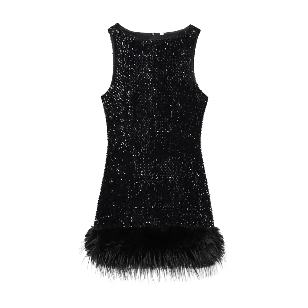 Step into the spotlight with the Zach Women’s Sequined Feather Embellished Sleeveless Mini Dress, designed to accentuate your silhouette and bring elegance to any occasion. With a combination of sequins and feather details, this dress provides a luxurious and fashionable look, perfect for business offices, leisure activities, and even internet celebrity style.