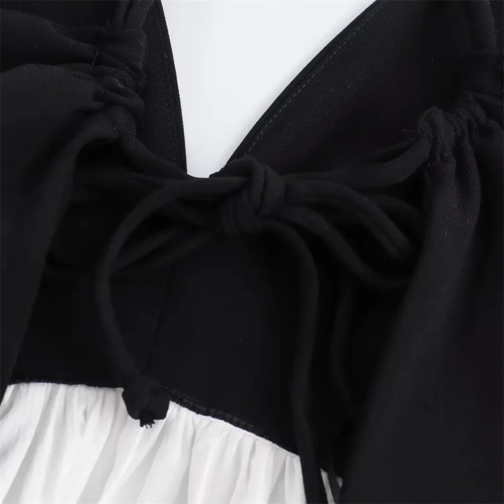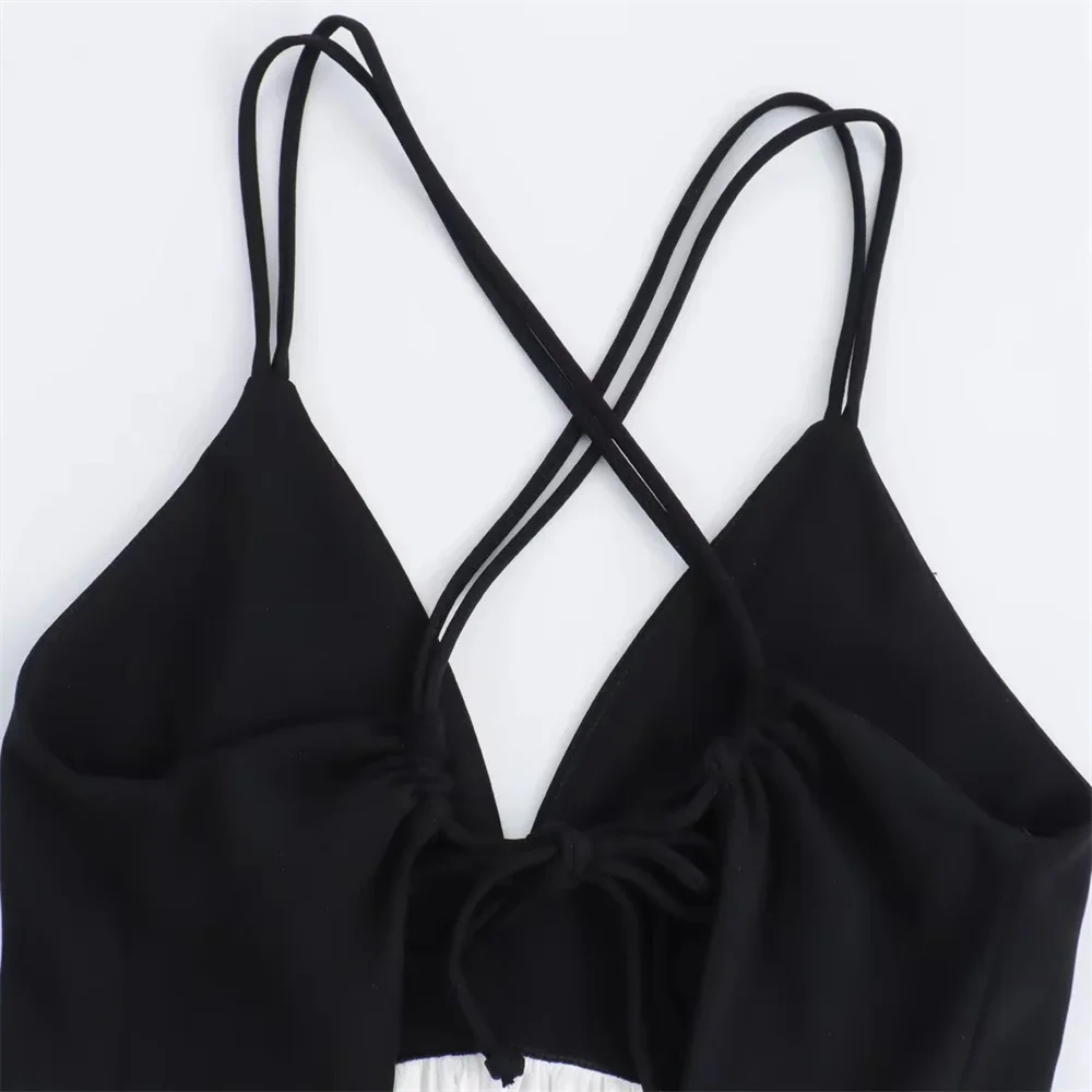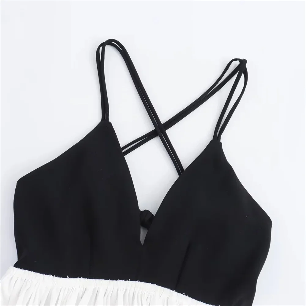 Zach Women’s Sleeveless Bareback Midi Dress with Splice Black and White