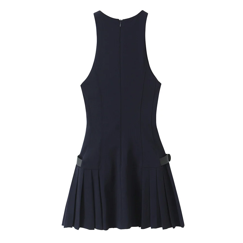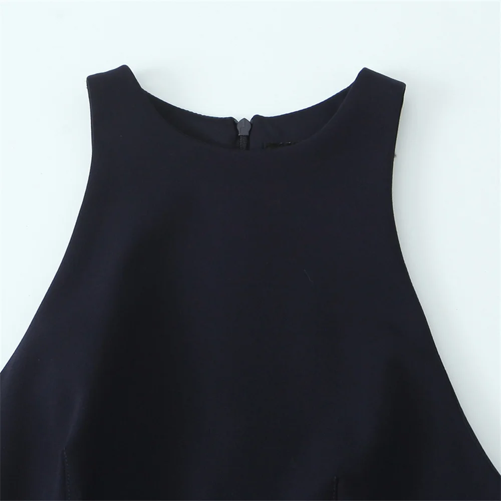 Zach Women’s Slim Fit Round Neck Sleeveless Black Frill Mini Dress with Zipper Detail