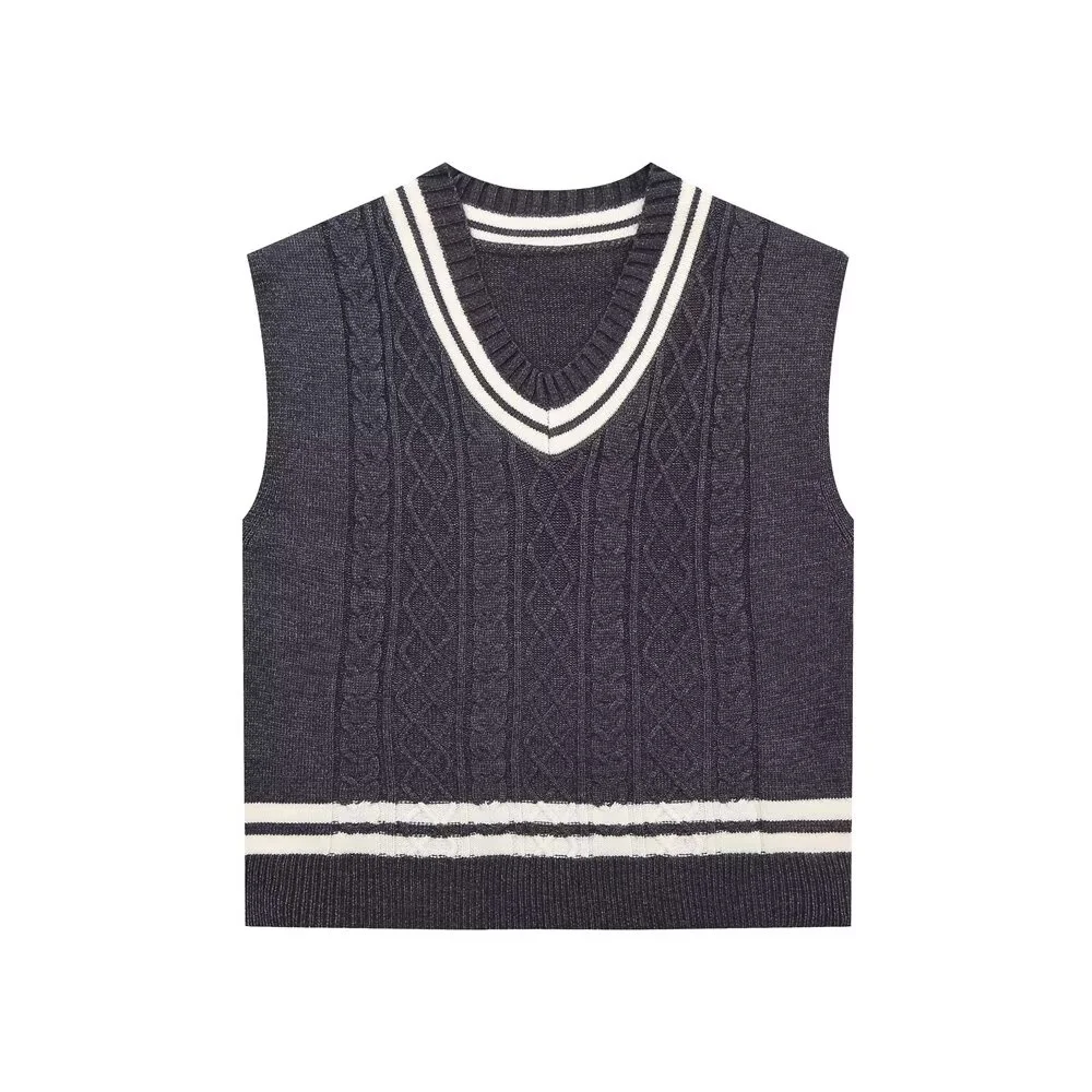 - V-Neck Knitted Vest: Featuring a contrast color design, the knitted vest is perfect for layering or wearing solo for a refined look.