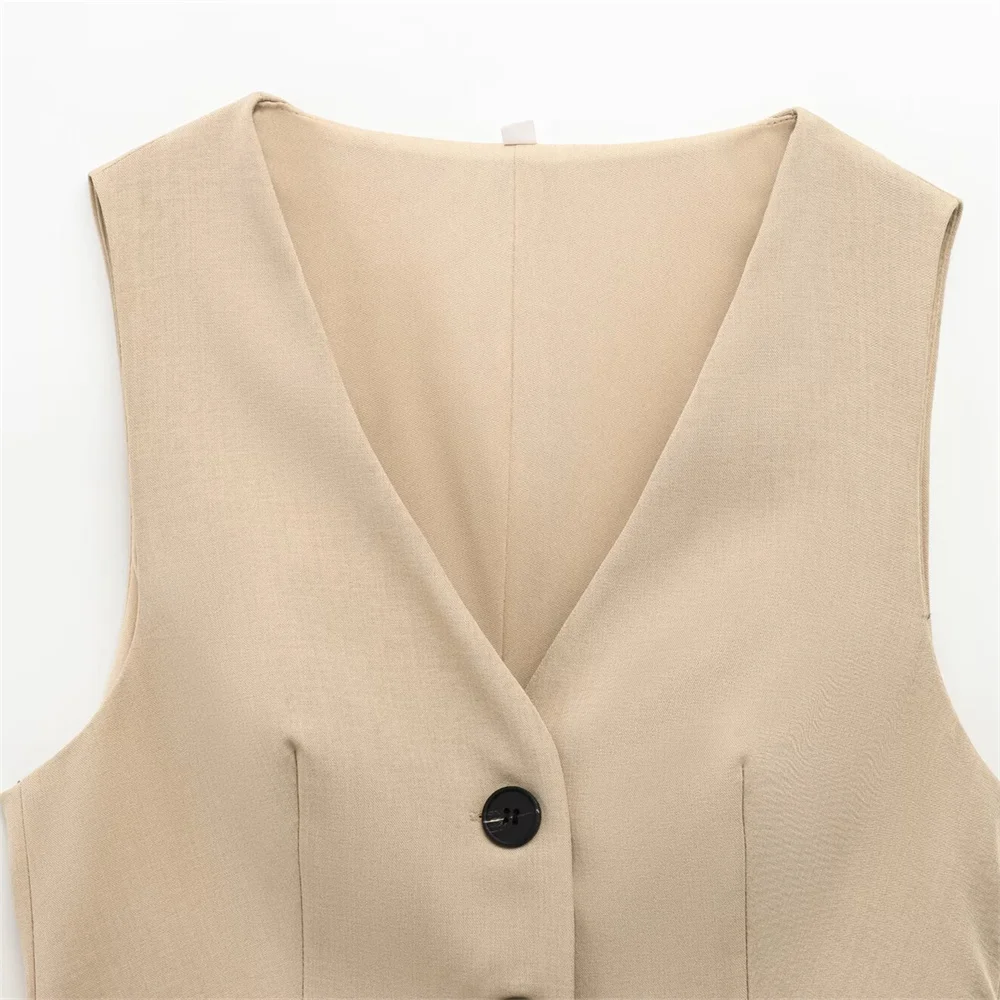 With its three-dimensional slimming cut, this outfit highlights your natural curves while offering a polished, fashion-forward silhouette. The sleeveless vest brings a clean, elevated edge, while the pleated skirt adds flow and femininity — making this the ultimate all-occasion outfit.